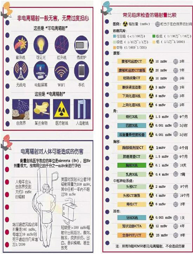 體檢車經(jīng)過幾十年的發(fā)展越來越先進(jìn),DR體檢車上面裝有車載DR設(shè)備。可以做胸部X光線檢查。一臺(tái)透視儀在體檢者胸前來回移動(dòng)照射,醫(yī)生在另一頭的檢查室觀察。體檢車放射檢查的確有利有弊是一把雙刃劍,不應(yīng)檢查過度,也不必因此諱疾忌醫(yī)。因?yàn)橥ㄟ^檢查可以更加容易對(duì)患者的病情確診,對(duì)癥下藥。放射性體檢,對(duì)身體或多或少有點(diǎn)傷害,主要的危害是放射檢查對(duì)我們是通過來自X線產(chǎn)生的電離進(jìn)行輻射。但是在必須檢查的情況下研究表明利大于弊,因?yàn)榻邮芤欢康妮椛涫钦5摹sw內(nèi)可以自我修復(fù)。一個(gè)大人接受一年100毫西弗的輻射對(duì)身體沒多大傷害的。但是不能過度放射檢查。當(dāng)有必要做的。當(dāng)數(shù)不能過于頻繁的情況或逐步改善無顯著變化,也沒有必要每天進(jìn)行審查,否則成為放療的變相。以下是常見臨床檢查的輻射量比較圖