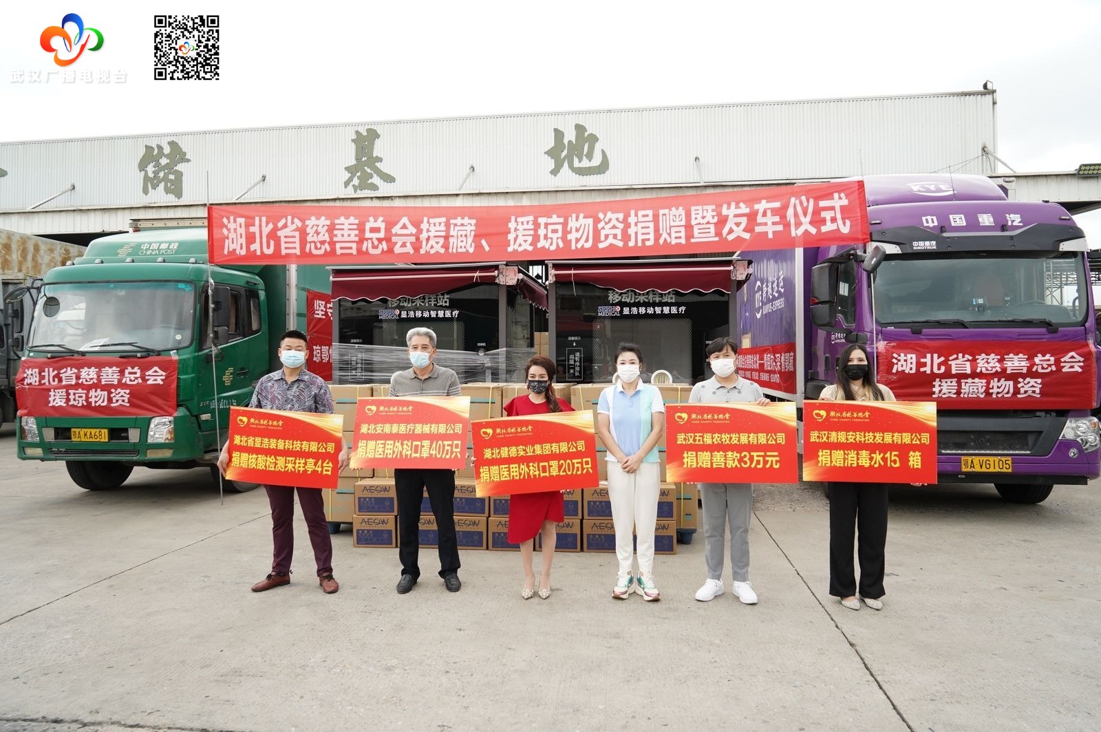 據(jù)悉,此批援藏、援瓊物資是在湖北省醫(yī)療器械行業(yè)協(xié)會(huì)支持下,聯(lián)動(dòng)湖北健德實(shí)業(yè)集團(tuán)有限公司、湖北安南泰醫(yī)療器械有限公司、湖北省顯浩裝備科技有限公司、武漢清規(guī)安科技發(fā)展有限公司、武漢五福農(nóng)牧發(fā)展有限公司、湖北屹軒東商貿(mào)有限公司共同捐贈(zèng),包含善款4萬(wàn)元、醫(yī)用外科口罩60萬(wàn)只、核酸檢測(cè)亭4臺(tái)、消毒水15箱。湖北中郵物流責(zé)任有限公司、湖北盛輝物流責(zé)任有限公司、跨越速運(yùn)集團(tuán)有限公司為物資提供運(yùn)輸、倉(cāng)儲(chǔ)、中轉(zhuǎn)裝卸等服務(wù)支持。