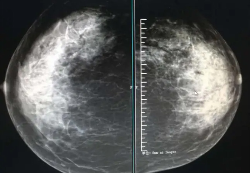 5類:高度懷疑惡性,臨床應采取適當措施(幾乎肯定的惡性)。這一類病變有高度的惡性可能性。檢出惡性率的可能性大于等于95%。形態(tài)不規(guī)則星芒狀邊緣的高密度腫塊、段樣和線樣分布的細小線樣和分支狀鈣化、不規(guī)則星芒狀邊緣腫塊伴多形性鈣化均應歸在這一類中。