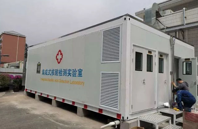 方艙實驗室需要場地平整工作完成項目基礎建設、給排水工程建設、鋪設各類線路,達到方艙安裝條件。方艙實驗室占地100平方左右,在滿負荷檢測情況下,每天可以1萬份檢測量。檢測量非常高,是疫情防控應用比較廣泛的實驗室。能迅速掌握患者體內(nèi)的病毒含量,精確度高達納米級別,可為新冠肺炎臨床診療和疫情防控提供及時、準確的檢測結(jié)果。實驗室里面有試劑準備室,樣本檢測室,擴增PCR室。配套有更衣室,緩沖室,洗浴室,洗消室。