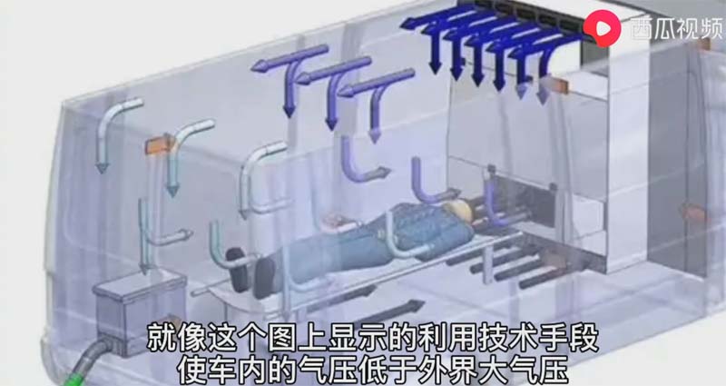 這2個月以來,新冠狀病毒在肆虐,在全國范圍內(nèi)確診人數(shù)持續(xù)增高。這個主要是通過飛沫傳染,因此轉(zhuǎn)運(yùn)病人的救護(hù)車需要具備良好的隔離性通風(fēng)性和無菌性。為了避免外界環(huán)境污染轉(zhuǎn)運(yùn)感染病患者就需要使用負(fù)壓救護(hù)車。那么負(fù)壓救護(hù)車有哪些特點(diǎn)呢?與我們平時(shí)常見的普通救護(hù)車有哪些區(qū)別不同點(diǎn)呢?顯浩體檢車廠家跟大家分享一下。最大的不同點(diǎn)就是普通救護(hù)車醫(yī)護(hù)人員和患者在同一空間。沒有隔離與救護(hù)車負(fù)壓凈化器。而負(fù)壓救護(hù)車通過重新設(shè)計(jì)的擔(dān)架。實(shí)現(xiàn)患者從家中就處于無菌的狀態(tài)。通過車載負(fù)壓凈化裝置向隔離艙輸送新鮮空氣。隔離倉的低氣壓氣體無毒化處理。既能保證完全隔離醫(yī)患雙方。又能保證外界的空氣不被污染。這是普通救護(hù)車達(dá)不到的。那么負(fù)壓救護(hù)車還有哪些特點(diǎn)呢?就像這個圖上顯示的利用技術(shù)手段使車內(nèi)氣壓低于外界氣壓。