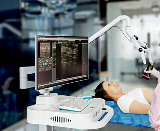 乳腺超聲設(shè)備自動(dòng)乳腺超聲診斷,超聲技術(shù)讓廣大女性有舒適快速的乳腺超聲檢查。檢查開(kāi)始的時(shí)候,首先在乳腺超聲設(shè)備的工作列表輸入患者的信息,簡(jiǎn)單直觀的軟件操作界面可以快速的輸入受檢人信息。并且選擇適當(dāng)?shù)膾呙枭疃群蛼呙桧樞颉H⊙雠P位海綿墊放在后背和臀部下面。并且在肩膀后面放枕頭幫助定位。固定成檢查有利姿勢(shì),有助于乳頭朝向天花板。使乳腺組織均勻分布,正常的擺位是高質(zhì)量,可回顧性檢查的必要條件。