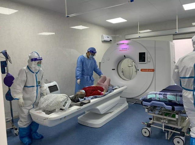 醫(yī)院發(fā)熱門診就診,長(zhǎng)方體箱子中進(jìn)行CT胸部檢查。這個(gè)就是方艙CT,在疫情防控期間發(fā)揮了重要作用。嚴(yán)格的場(chǎng)地布局,設(shè)備組裝,質(zhì)量控制檢測(cè),放射防護(hù)檢測(cè),就可以馬上投入使用。方艙CT獨(dú)立在醫(yī)院大樓外面,主要是配套發(fā)熱門診使用。如果有疑似病人就通過(guò)專用通道進(jìn)入方艙CT檢查。雙向單通道沒(méi)有與外界聯(lián)系。CT檢查準(zhǔn)時(shí)高效,確保了檢查的強(qiáng)隔離沒(méi)有任何接觸,可以保障檢測(cè)人員跟病人沒(méi)有感染的風(fēng)險(xiǎn)。采用閉環(huán)管理,檢查人員的口罩、隔離衣服、手套都是全方位的消毒。CT掃描檢查好后的圖像質(zhì)量。上傳到數(shù)據(jù)系統(tǒng)然后查看圖像。各個(gè)科室的醫(yī)生也可以通過(guò)網(wǎng)絡(luò)看片。方便高效快捷。方艙CT的啟用為患者提供精準(zhǔn)的影像診斷,為醫(yī)生提供快捷的影像報(bào)告、準(zhǔn)確的參考依據(jù),疫情防控提供有力的數(shù)據(jù)支持。