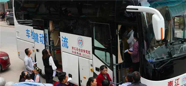 婦幼保健院的體檢車(chē)醫(yī)護(hù)人員上山下鄉(xiāng),下到社區(qū)。為人民群眾開(kāi)展國(guó)家免費(fèi)婚前醫(yī)學(xué)檢查與孕前優(yōu)生健康檢查。原來(lái)是群眾自己到醫(yī)院進(jìn)行免費(fèi)檢查的。為了疫情防控需要,減少人員到醫(yī)院聚集避免交叉感染。體檢車(chē)上門(mén)服務(wù),為提高婚檢率、孕檢率開(kāi)辟了新路子。體檢車(chē)很受歡迎,群眾絡(luò)繹不絕地前來(lái),自愿接受婚前醫(yī)學(xué)檢查、孕前優(yōu)生健康檢查。