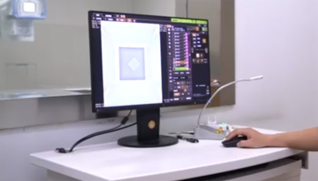 DR主要有X射線輻射源,機架攝影床,影像增強器,高壓發(fā)生器和計算機系統(tǒng)組成。首先檢查DR系統(tǒng)的整體外觀,標有廠家信息,型號,編號參數(shù),生產(chǎn)日期清晰可認的標志。看看空氣比釋動能怎么檢定,首先打開視野燈。然后把探測器放到視野燈照射中心。調(diào)節(jié)視野窗值最大。調(diào)節(jié)探測器焦點到探測器1米的距離。最后打開探測器。接下來到控制室設(shè)置曝光條件進行曝光,更改千伏為70千伏。調(diào)節(jié)為10毫秒,按手柄進行曝光,保持條件不變再重復曝光兩次。然后再進去DR室讀取計量儀數(shù)據(jù)并記錄。讀取3次計數(shù)測量數(shù)值。并且記錄處理。這個就是空氣比釋動能測定過程。目前流行的計量儀都集成了輻射輸出的值和管電壓測量功能。輻射輸出的值和管電壓可以直接通過計量儀讀取數(shù)值。