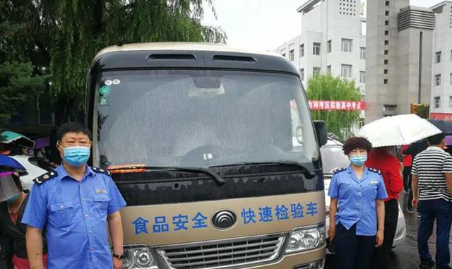 由于疫情情況推遲了一個月,一年一度的高考7月7日開始這幾天舉行。全力做好高考重大活動保障工作,切實保障高考期間師生飲食安全要做好食品安全保障工作,確保學生吃的放心、吃的安心。食品檢測車開進校園高考考點。對食品流通、餐飲、學校食堂及考區(qū)進行檢查。食堂從原料采購、粗加工、切配、面食制作、烹調(diào)、備餐、分餐、餐用具的清洗消毒環(huán)節(jié)全程把關,提前介入、風險防控。2020年高考是比較特殊的一年,學校考點就餐人數(shù)多,疫情還沒結束處于疫情防控期間。這樣對食品安全的要求更高了。食品檢測車的高效高質(zhì)量檢測確保高考期間飲食安全。