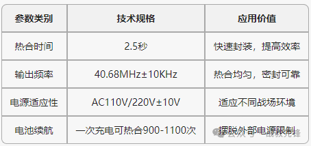 野戰(zhàn)醫(yī)院的救護環(huán)境,每一分每一秒都關(guān)乎生命。密封醫(yī)療包裝的精準(zhǔn)手熱合機是關(guān)鍵設(shè)備。精準(zhǔn)、高效、穩(wěn)定的性能戰(zhàn)傷救治生命保障線。熱合機的工作原理是它是利用高頻電場原理塑料熔接,巧妙的溫度控制設(shè)計,增加了機體溫度自動監(jiān)控和反饋調(diào)節(jié)機制;通過內(nèi)循環(huán)進風(fēng)散熱工業(yè)設(shè)計及相關(guān)散熱裝置,可連續(xù)熱合>400次,保證熱合機高頻率使用時溫度的可控性,提高工作效率,保障熱合效果,延長設(shè)備使用壽命。使塑料內(nèi)部分子發(fā)生極化并高速運動產(chǎn)生熱量,從而達到熔接效果。設(shè)備工作時,PVC材料達到熔融狀態(tài),同時在熱合電極的壓力下完成密封,避免液體滲漏和細菌污染。