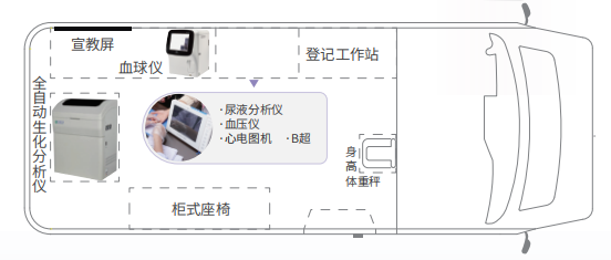 便捷、周全、高效的上門體檢服務(wù),智慧體檢車就能把健康醫(yī)療送到家門口,定制化可根據(jù)不同需求進(jìn)行個(gè)性化定制改裝自動(dòng)化數(shù)據(jù)自動(dòng)采集,記錄,生成規(guī)范檢驗(yàn)數(shù)據(jù)庫標(biāo)準(zhǔn)化國家公 衛(wèi)服務(wù)標(biāo)準(zhǔn)常規(guī)病例隨訪標(biāo)準(zhǔn)化操作流程智能化智 能健康管理系統(tǒng)智能風(fēng)險(xiǎn)評(píng)估醫(yī)學(xué)知識(shí)庫。血壓、血糖、B超、心電圖檢查。享受優(yōu)質(zhì)的體檢醫(yī)療服務(wù)。通過檢查后身體有問題就要早治療早預(yù)防。20多分鐘就可以完成體檢項(xiàng)目,省時(shí)省力。農(nóng)民得到了實(shí)惠,都花錢少了。體檢方便了。推動(dòng)了公共衛(wèi)生服務(wù)的均等化。隨著醫(yī)療服務(wù)的不斷提高,體檢車就可以生化檢測,血液檢測,大大的節(jié)省了檢測報(bào)告時(shí)間。控制一些疾病。體檢車,可根據(jù)不同需求進(jìn)行個(gè)性化定制改裝。數(shù)據(jù)自動(dòng)采集、記錄,生成規(guī)范檢驗(yàn)數(shù)據(jù)庫。并依據(jù)國家公衛(wèi)服務(wù)標(biāo)準(zhǔn)常規(guī)病例隨訪標(biāo)準(zhǔn)化操作流程,體檢車專用設(shè)備不受環(huán)境溫度的影響,隨開隨用,能適應(yīng)春、夏、秋、冬四季以及高寒、高原、炎熱等惡劣環(huán)境。