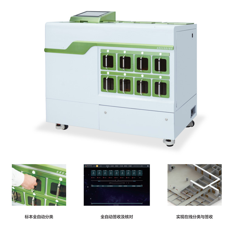 血液標本智能分揀機主要是通過標本號,對血液標本進行全自動分揀及簽收;它的前端可以與標本自動運輸軌道進行連接,后端亦可以連接軌道與實驗室自動流水線直接實現(xiàn)無縫對接。